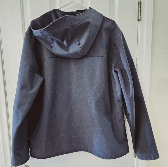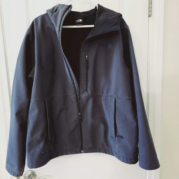 THE NORTH FACE Men’s Apex Bionic 2 DWR Softshell Hooded JacketNavygently usednonsmoking homeFACE THE WEATHER. The water- and wind-resistant Men's Apex Bionic Hoodie has extra stretch for highly mobile exploration. It can also be a perfect lower layer for times when the mercury plummets.WINDPROOF & WATER-RESISTANT. Made from a 100%-recycled polyester, advanced WindWall protection and coated with a Durable Water-Repellent (DWR) Finish, this 100% windproof jacket keeps you warmer and more comfortable all day long.STANDARD FIT. With a flattering shape and ample mobility, this jacket is perfect for easy wear or layering up. Whether for a casual look in town or active days in the wilderness, you'll experience freedom of movement through the shoulders and chest.OUTDOOR VERSATILITY. Never Stop Exploring with thoughtful features that help you go further —a secure-zip pocket at the chest and two zip hand pockets allow you to safely store your small valuables.EXPLORATION WITHOUT COMPROMISE. Easily find our most sustainable products with this badge. To qualify, apparel, equipment and accessories must be made with 75% or greater recycled, regenerative and/or responsibly sourced renewable materials by weight.